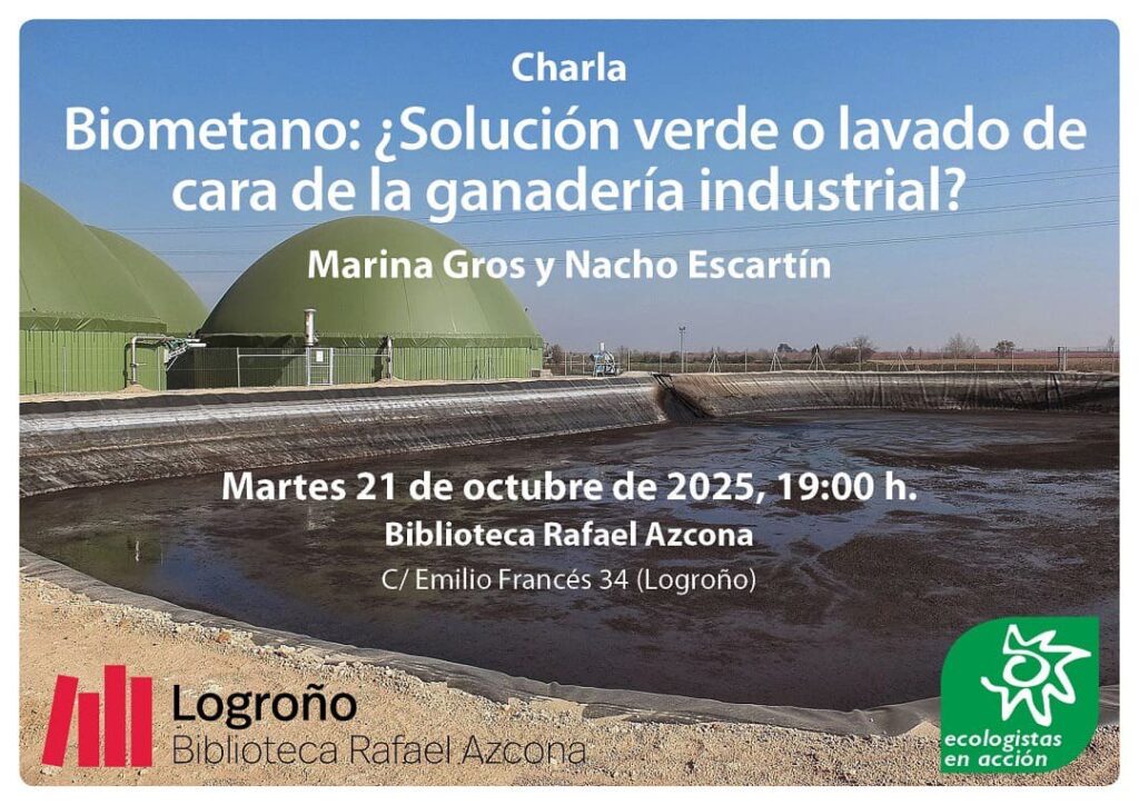 El 21 de octubre en Logroño daré una charla junto a Marina Gros sobre “Biometano: solución verde o lavado de cara de la ganadería industrial”.