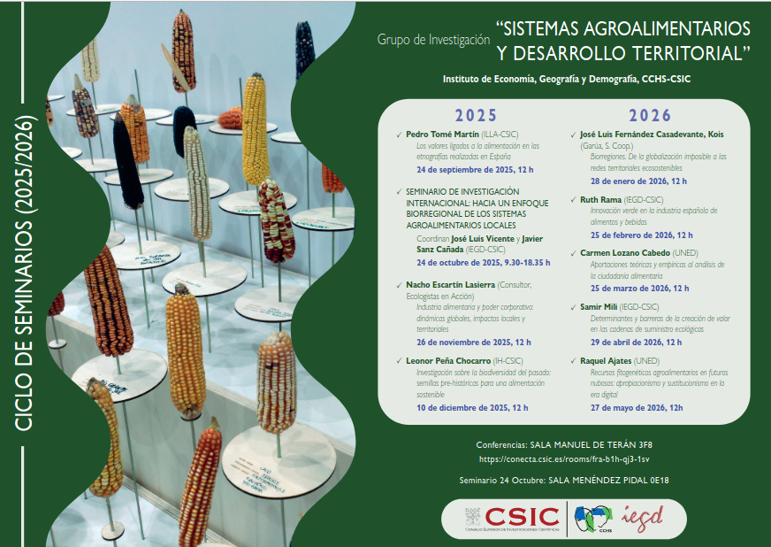 El 26 de noviembre estaré en Madrid para impartir una charla sobre “Industria alimentaria y poder corporativo: dinámicas globales, impactos locales y territoriales”, dentro de este interesantísimo ciclo que organiza el Instituto de Economía, Geografía y Demografía del CSIC.